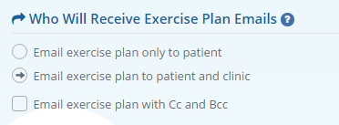 When sending exercise plan email to patient you can send copy of email to your clinic email address. To set this you need to click on "Settings" in the top right corner and than on the left menu click on "Email Sending Options" and select "Email exercise plan to patient and clinic"