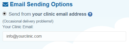 Using this option, emails will be sent to your patients with the sender address set to your clinic email address. You can also specify your clinic email that you would like to use for sending emails.